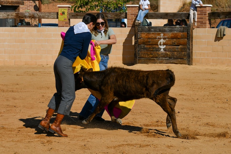 Posteriormente, se dio suelta a dos becerras en las que Aloi estuvo ayudando a aquellos que salieron al ruedo, dándoles consejos y hasta toreando con ellos al alimón, lo que generó un gran entusiasmo y resultó muy divertido.