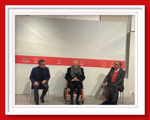 Coloquio que han llevado a cabo el periodista Roberto Gómez, el ganadero Victorino Martín y el propio Miguel Ángel Moncholi, en el que se ha hecho un repaso de su extensa carrera de más de 50 años, especialmente dedicada al periodismo taurino.